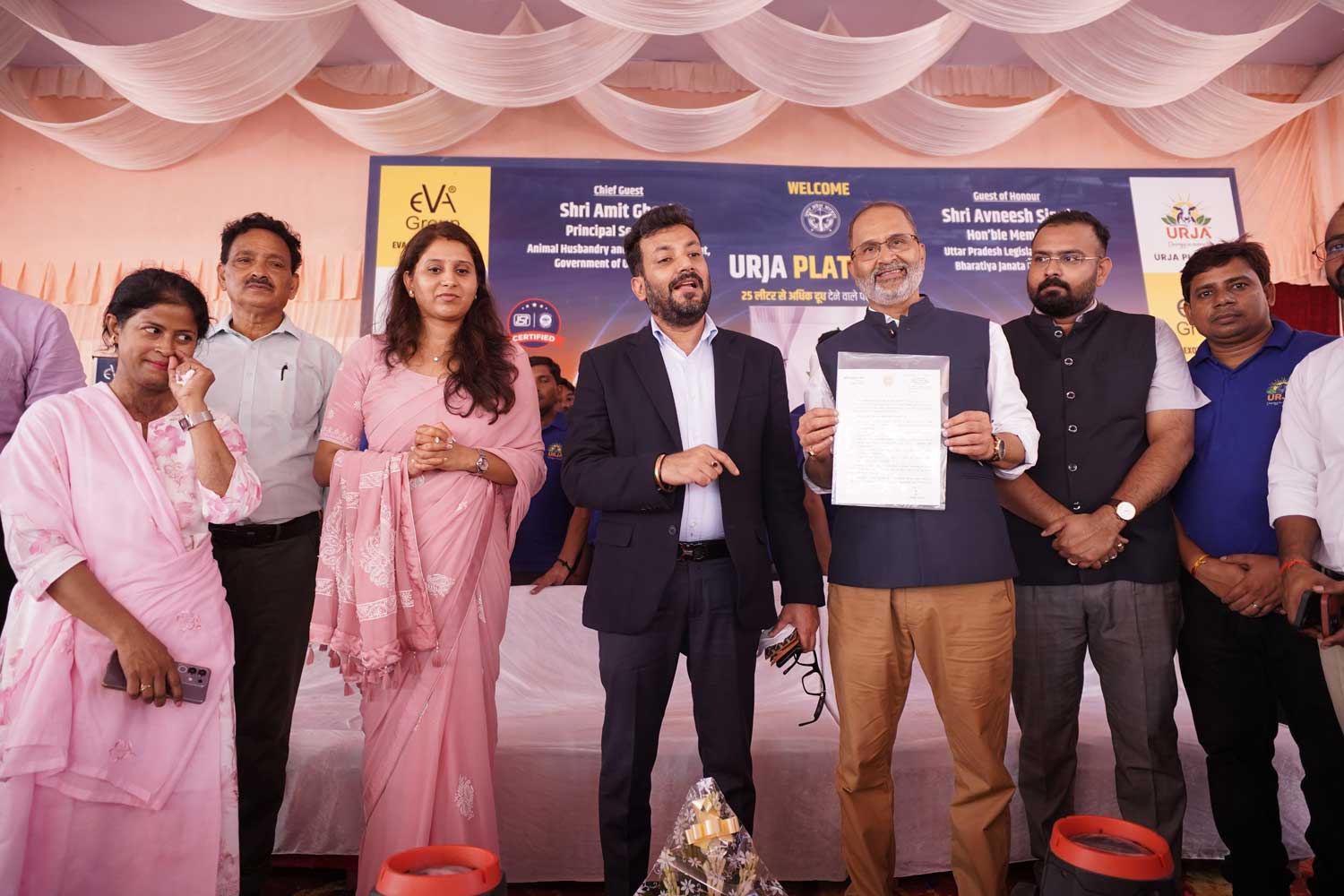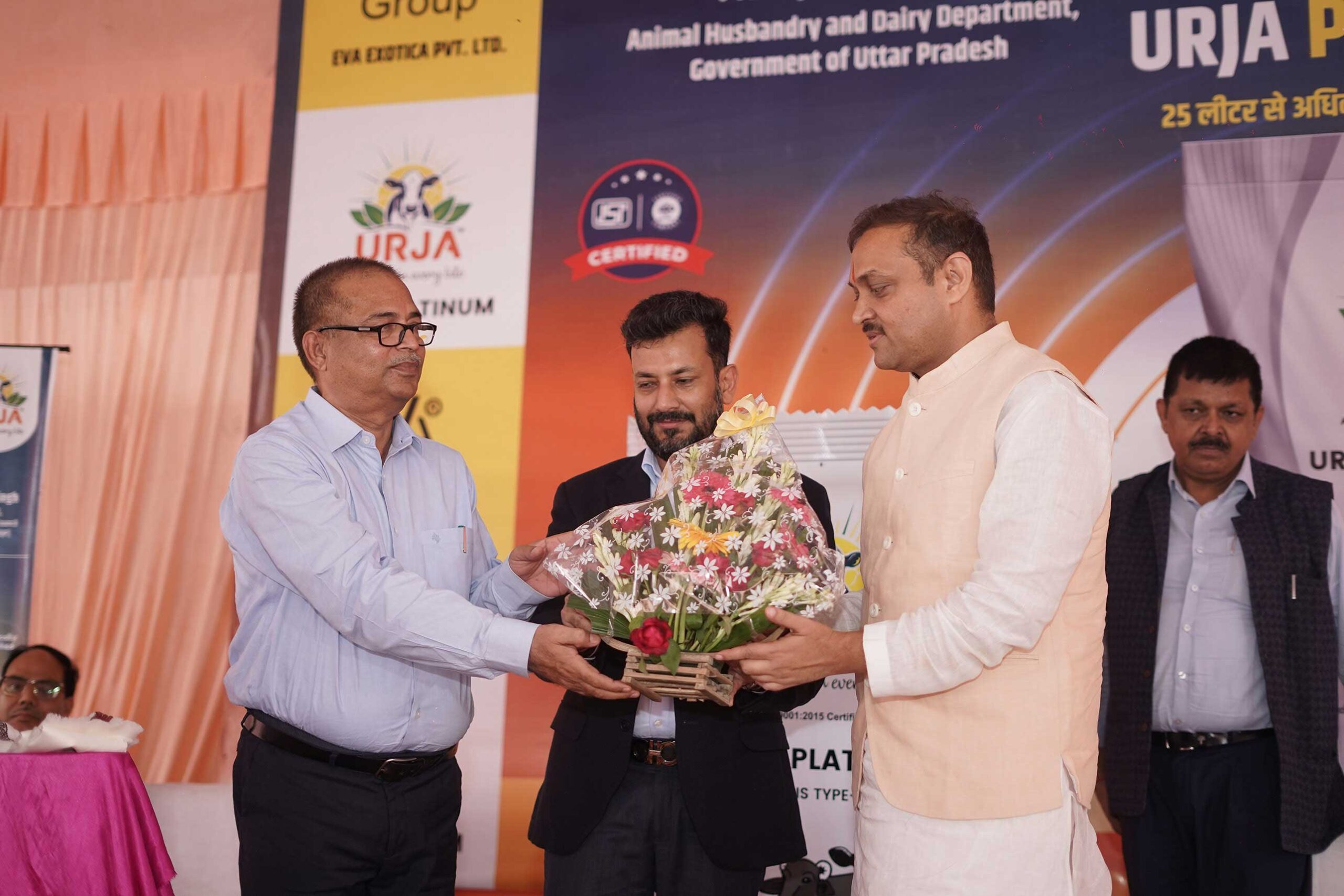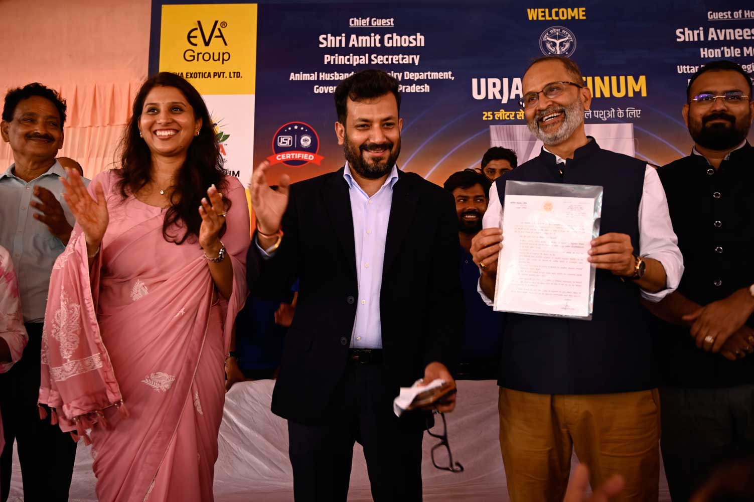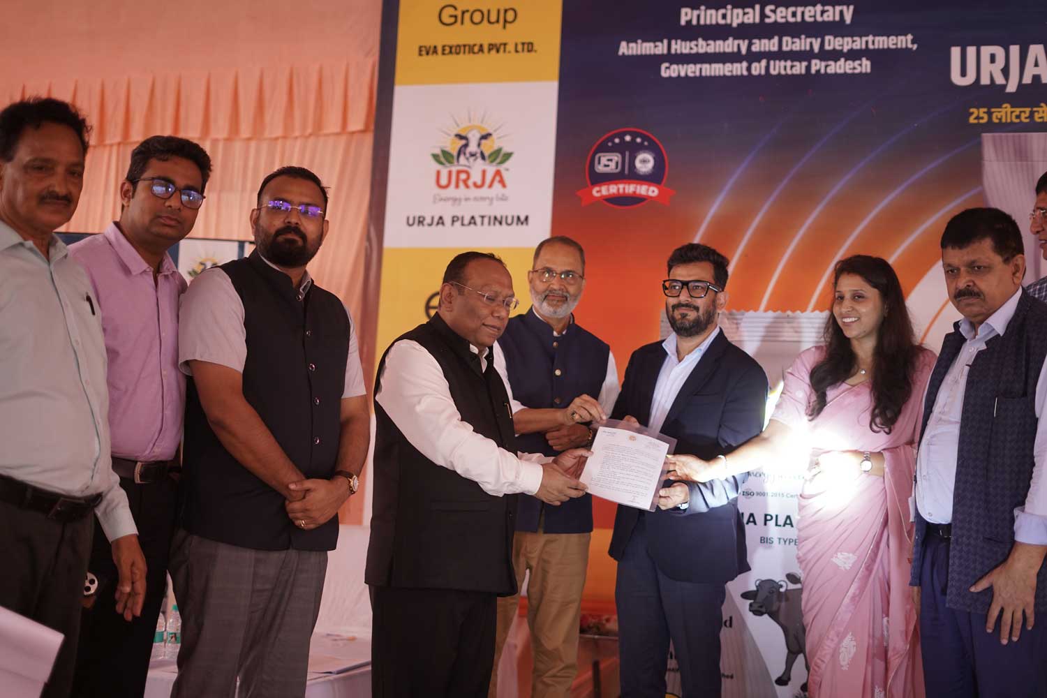 Urja Group, under Shrawasthi Agrotech Pvt. Ltd., Eva Exotica Pvt. Ltd., and Aurraa Agrotech Pvt. Ltd., has been proudly acknowledged by the Government of Uttar Pradesh – Department of Animal Husbandry & Dairy Development – for its outstanding contribution to the advancement of the animal husbandry sector in the state. This recognition reflects our commitment to innovation, farmer welfare, and rural development.